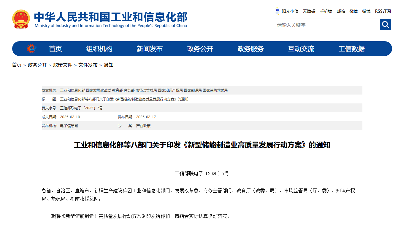 投资界(ID:pedaily2012)2月18日消息,为加快构建新一代信息技术与新能源等增长引擎,深化新型储能供给侧结构性改革,工业与信息化部、国家发展改革委等八部门近日联合印发《》,以加速完善产业体系,培育3—5家生态主导型企业,明显地增强产品性能,持续拓展应用领域,培育发展新动能为目标,引导新型储能制造业高端化、智能化、绿色化发展。