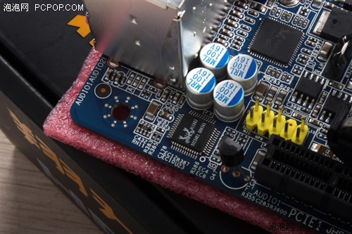 板载芯片组方面,选用了Realtek ALC883声卡芯片,网络芯片选用RTL8111C,供给千兆局域网络支撑。音频输出电容部分选用了多颗滤波电容,确保高品质。