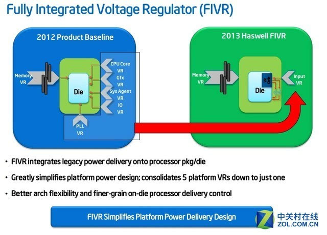 这个规划从技术上来说好极了,但惋惜的是,成也萧何败也萧何。这种规划下,低本钱的主板都能上高端CPU了,那高端主板是不是要回老家种田?主板厂商们对此定见很大。而在Intel来说,CPU把主板的活揽了,CPU的TDP更高了,尽管总发热是降低了,但把问题往自己身上揽,还要被对方骂,这就两端不讨好了,所以,FIVR规划只用了这一代就被抛弃了。