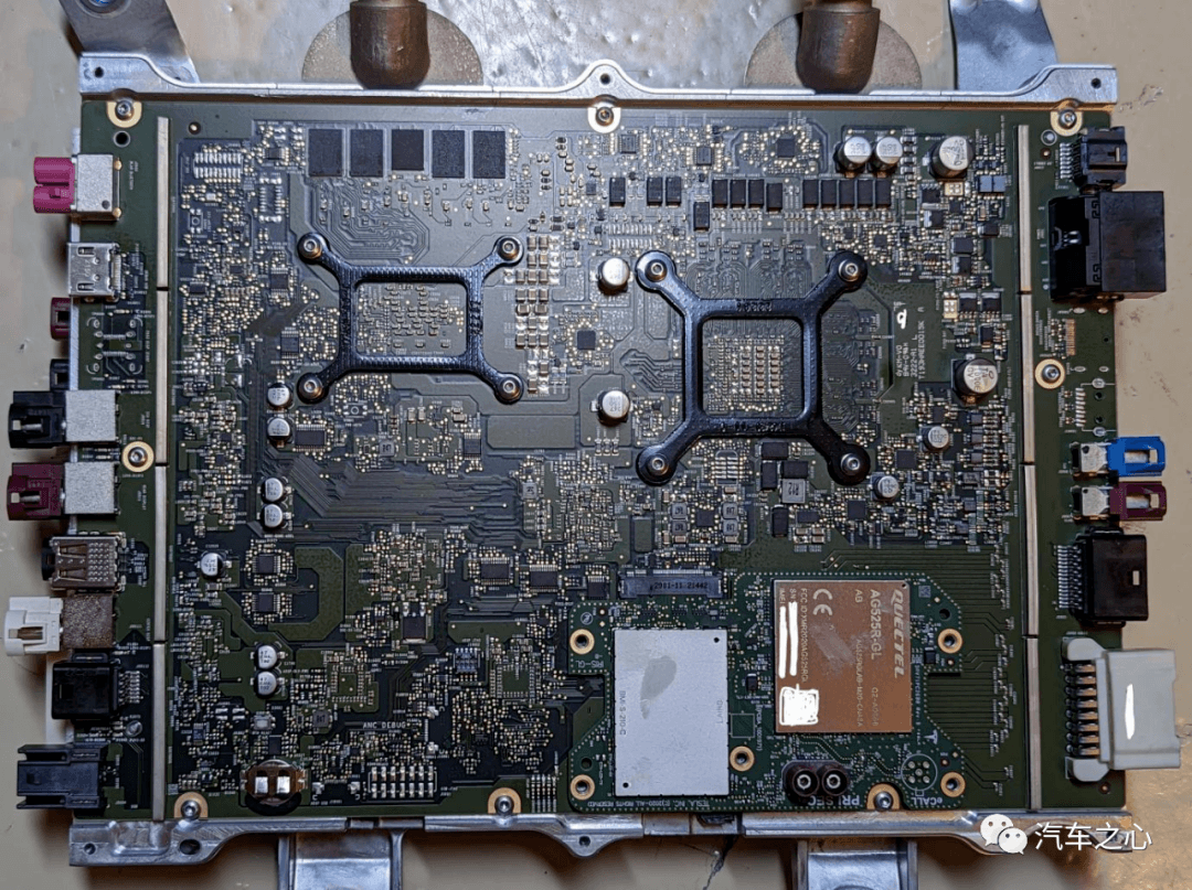 在两片 FSD 下面似乎有两片车载以太网物理层芯片,应该是较新的 88Q2112。