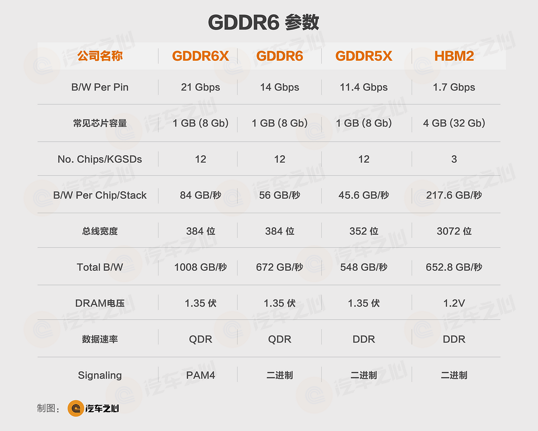 不过和 AI 训练用芯片广泛使用的 HBM2 内存还是差距明显,当然了,HBM2 价格远高于 GDDR6X。