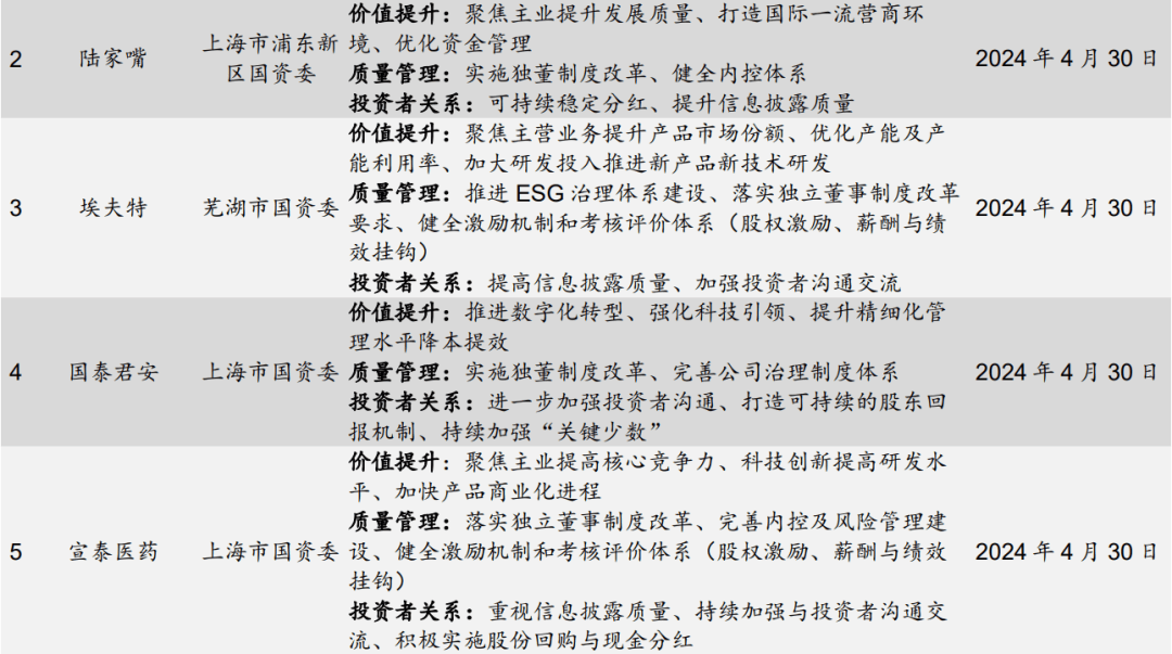 风险提示:国企改革与市值管理有关政策的推进进度没有到达预期,或后续政策方向发生明显的变化;报告中列示上市公司不涉及投资建议。